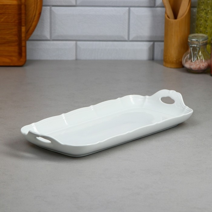 Элегантное фарфоровое блюдо - идеальный выбор для сервировки любых блюд. Блюдо из фарфора украсит любой стол и добавит изысканности вашей еде. Подходит для сервировки салатов, пасты, суши, закусок, а также холодца, рыбы, мяса и других блюд. Белый цвет и его гладкая текстура придают блюду изящный и элегантный вид, который подойдет для разных мероприятий и столовых сервировок. Также может использоваться в качестве декоративной подставки для фруктов, сыра и других украшений на вашем столе. Идеально подходит для сервировки различных явств на столе в кафе, ресторане, столовой или дома. Благодаря его форме и размеру, вы можете разнообразить ваше меню, включая нарезки, печенье, картофель фри, салаты, варенье, фрукты и сладости. Независимо от того, используется ли оно на свадьбе, вечеринке или просто для ужина в кругу семьи, это блюдо будет удачным выбором для подачи.