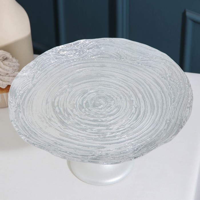 Блюдо сервировочное «Античная роза», d=28 см, на ножке, цвет платиновый