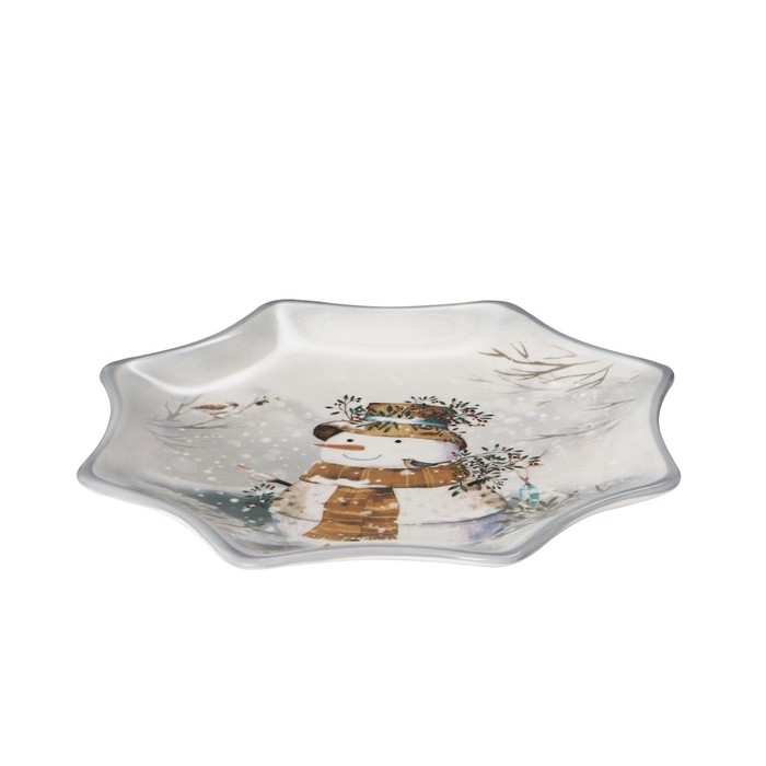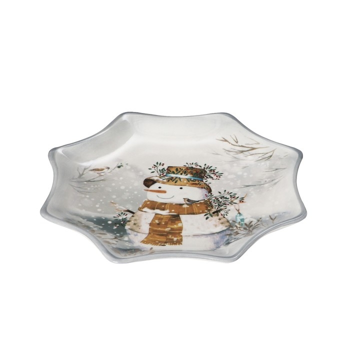 Блюдо сервировочное Доляна «Рождественский снеговик», d=20 см, цвет белый