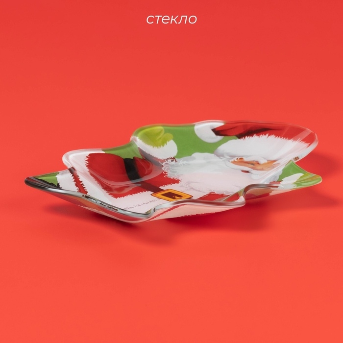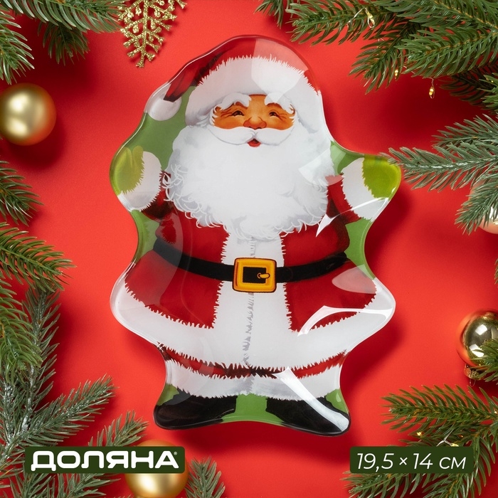 Блюдо сервировочное стеклянное Доляна «Дед Мороз», 19,5×14 см
