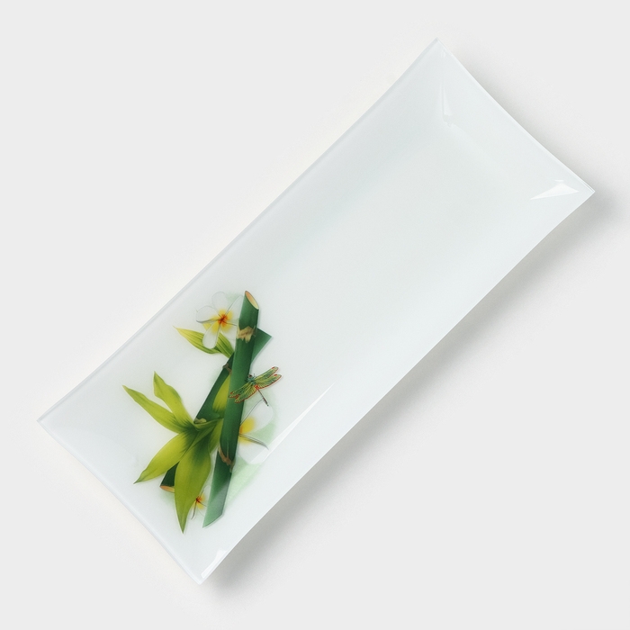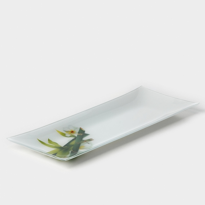 Блюдо стеклянное Доляна «Бамбук», 36,5×15 см, цвет белый