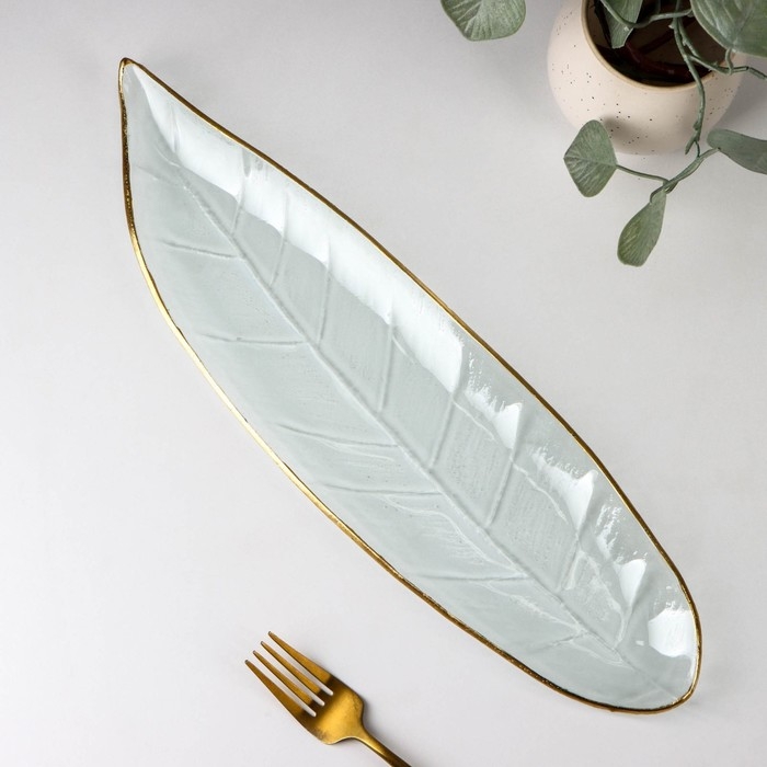 Блюдо стеклянное сервировочное «Лист», 11×40 см, с золотой каймой