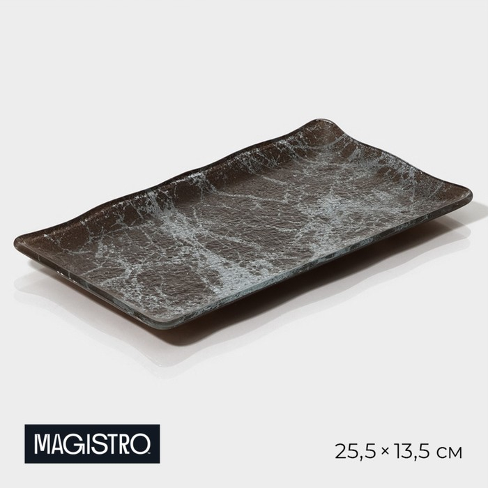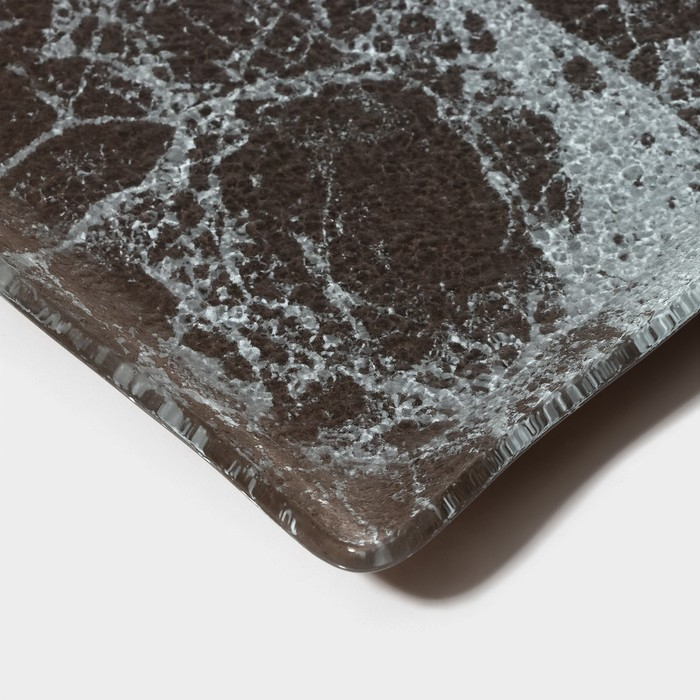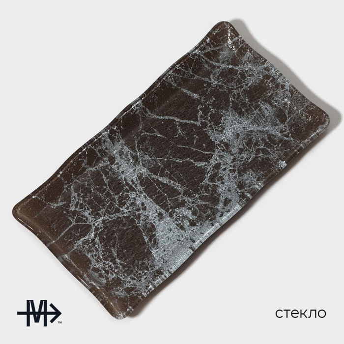 Блюдо стеклянное сервировочное прямоугольное для подачи Magistro «Мрамор», 25,5×13,5×1,5 см, цвет графит