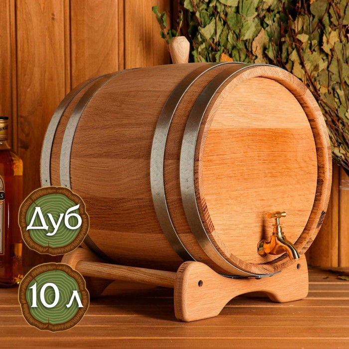 Бочка дубовая на подставке, 10л, кавказский дуб, кран из латуни