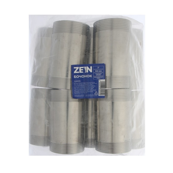 Бочонок ZEIN, 2", длина 100 мм, наружная резьба, нержавеющая сталь, фасовка 2 шт.