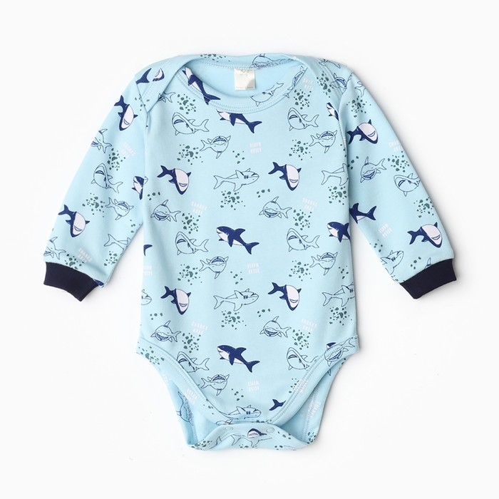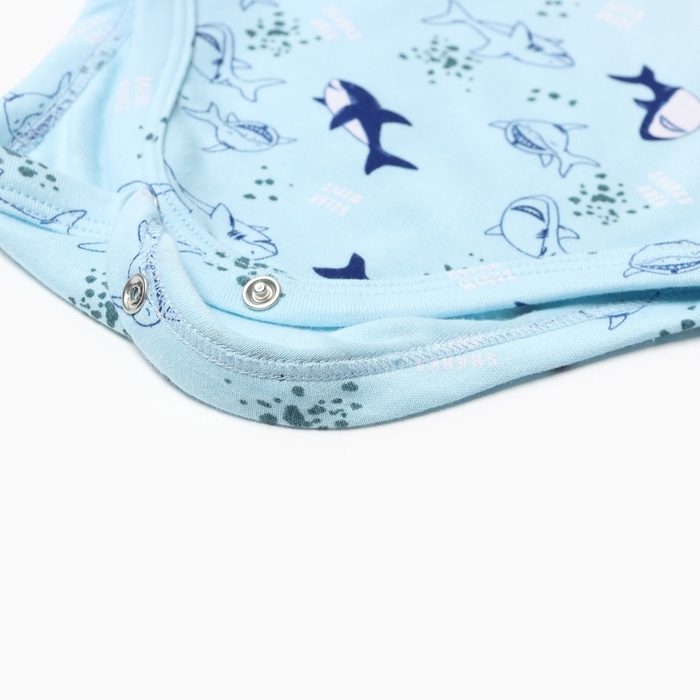 Боди детское на кнопках, цвет голубой/акулы, рост 62 см