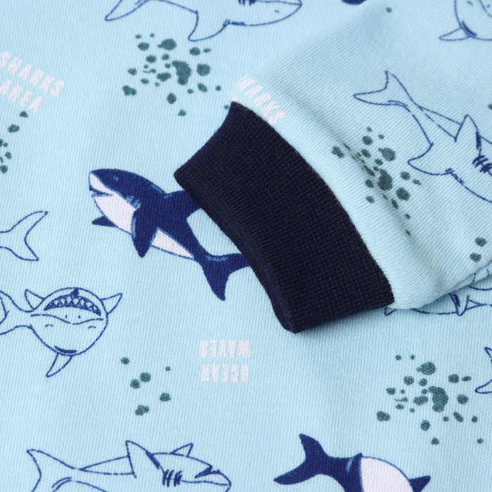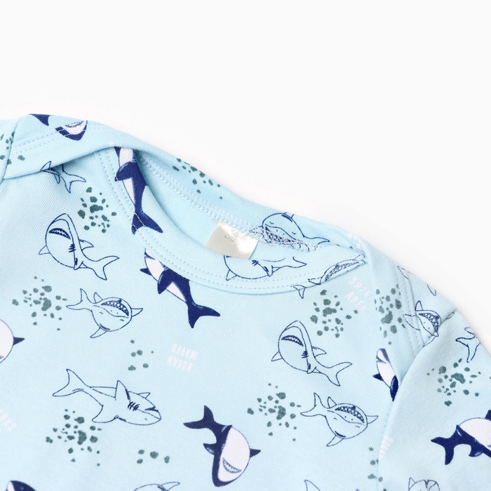 Боди детское на кнопках, цвет голубой/акулы, рост 68 см