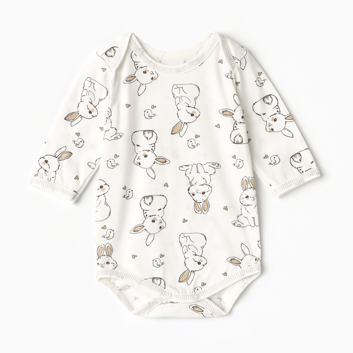 Боди детское с длинным рукавом, цвет белый/зайчики, рост 80