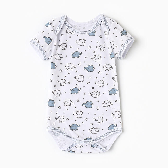 Боди детское с коротким рукавом, цвет белый/слоны, рост 80