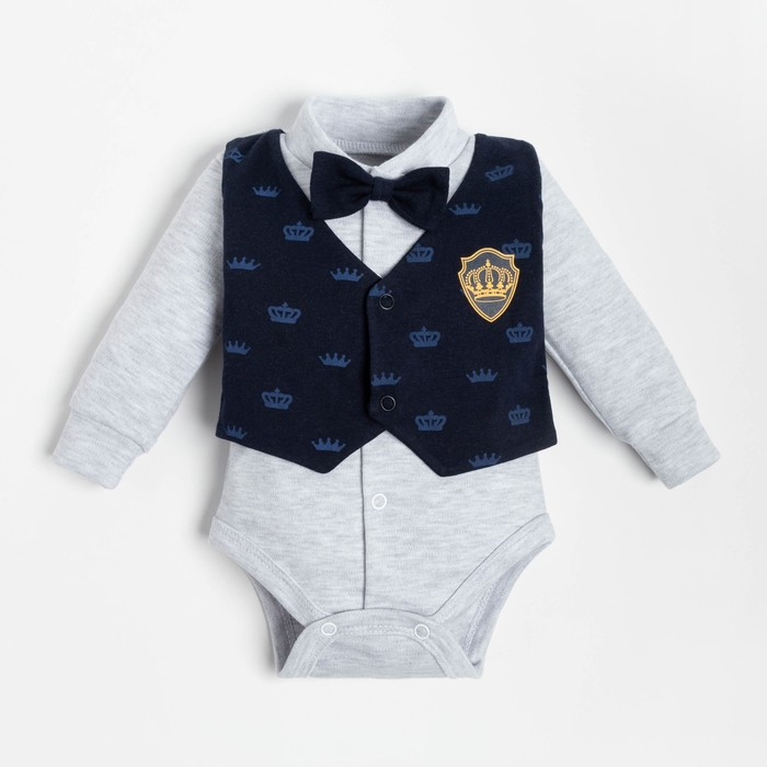 Боди Крошка Я "Костюм корона", синий/серый, рост 68-74 см