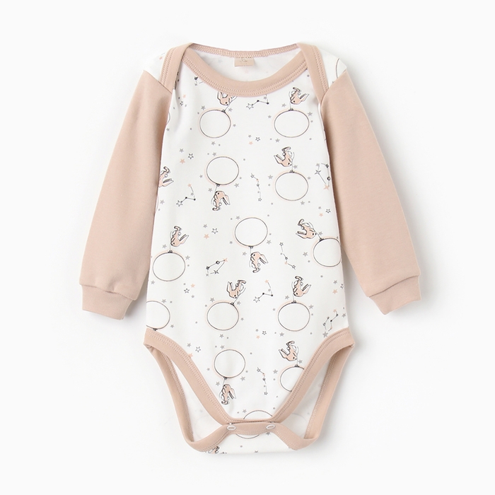 Боди с длинным рукавом, цвет бежевый/зайцы, рост 68