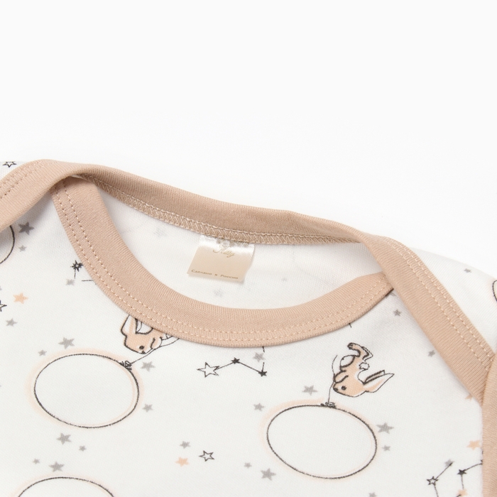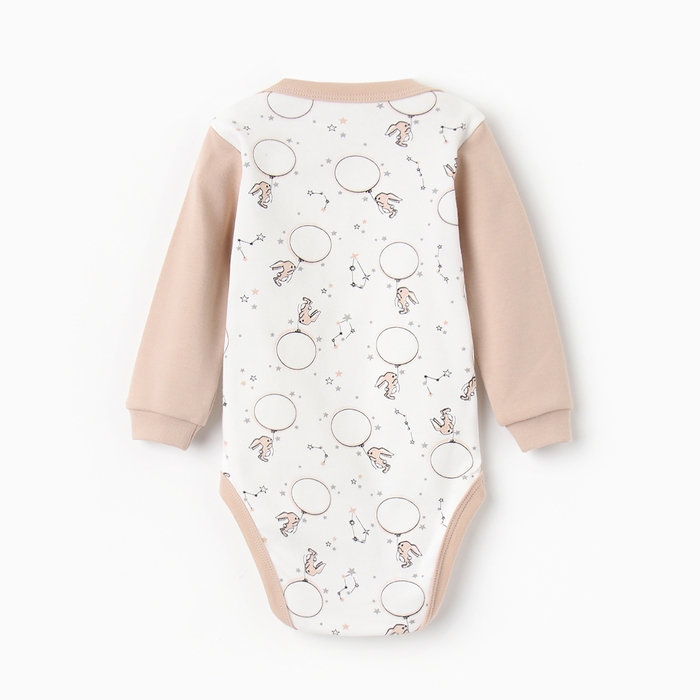 Боди с длинным рукавом, цвет бежевый/зайцы, рост 74