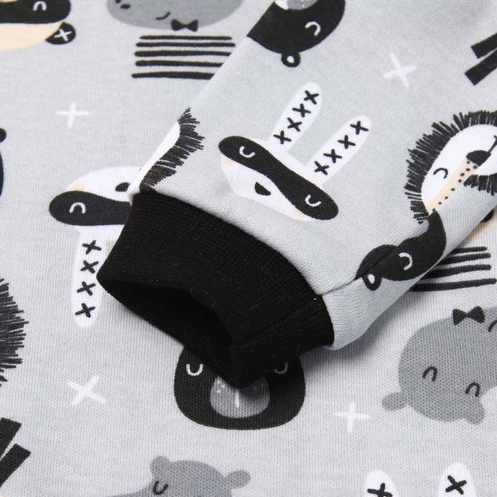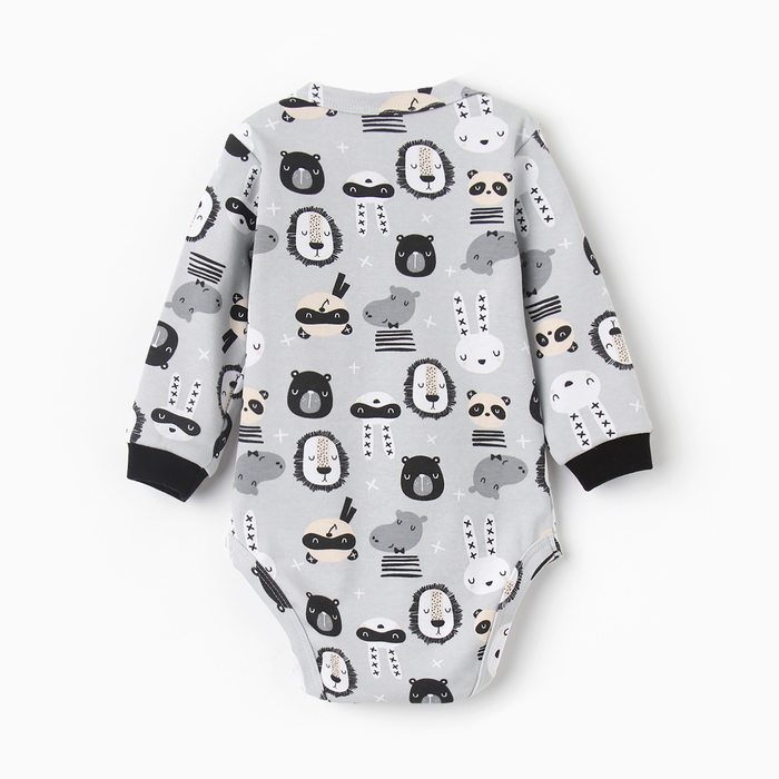 Боди с длинным рукавом, цвет серый/зверята, рост 74 см