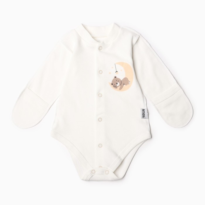 Боди с закрытыми ручками, цвет молочный/мишка, рост 62 см