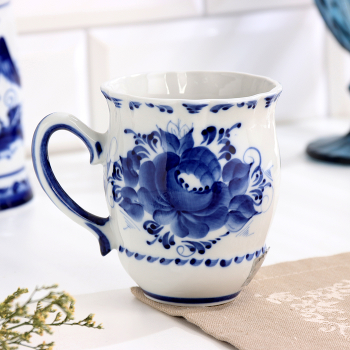 Бокал "Дачный" автор Еремина Л.Г.,12х8х10 см, 330 мл, 1 сорт, гжель