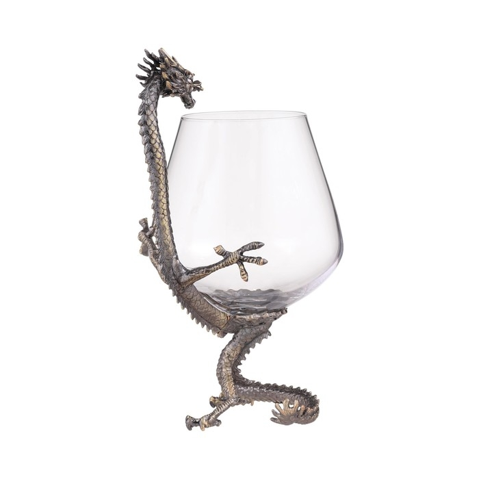 Стакан изготовлен из высококачественного стекла и цинкового сплава, что обеспечивает его прочность. Стекло позволяет любоваться цветом содержимого, а ножка из цинкового сплава делает бокал устойчивым и долговечным. Стекло не впитывает запахи и не меняет вкус напитка. Легко моется и сохраняет свой первоначальный вид на протяжении долгого времени. Бокалы пригодятся для эстетичной подачи и употребления различных напитков. Могут быть частью сервировки стола и подчеркивать атмосферу мероприятия. А также служить украшением интерьера. Бокал также хорошо подходит для подачи красных, белых, розовых и игристых вин. Объем бокала позволит в полной мере оценить аромат и вкус вина, особенно если это сложные и насыщенные сорта. Бокал также хорошо подходит для подачи красных, белых, розовых и игристых вин. Объем бокала позволит в полной мере оценить аромат и вкус вина, особенно если это сложные и насыщенные сорта. Бокал ""Дракон"" станет отличным подарком на любой значимый праздник: юбилей, годовщину, свадьбу. Не останется незамеченным среди ценителей коньяка и коллекционеров, а также может быть интересен тем, кто увлекается мифологией и культурой разных народов. Он будет радовать своего владельца красотой и функциональностью на протяжении многих лет. Подчеркнет индивидуальность и вкус своего обладателя, став незаменимым атрибутом любого праздничного стола или романтического вечера.