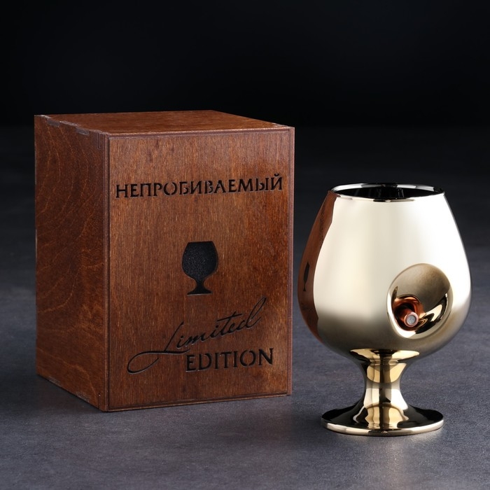 Бокал для коньяка "Непробиваемый. Золотой", с пулей, 390 мл