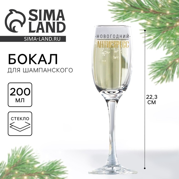 Бокал для шампанского «Новогодний антистресс», на Новый год, 200 мл