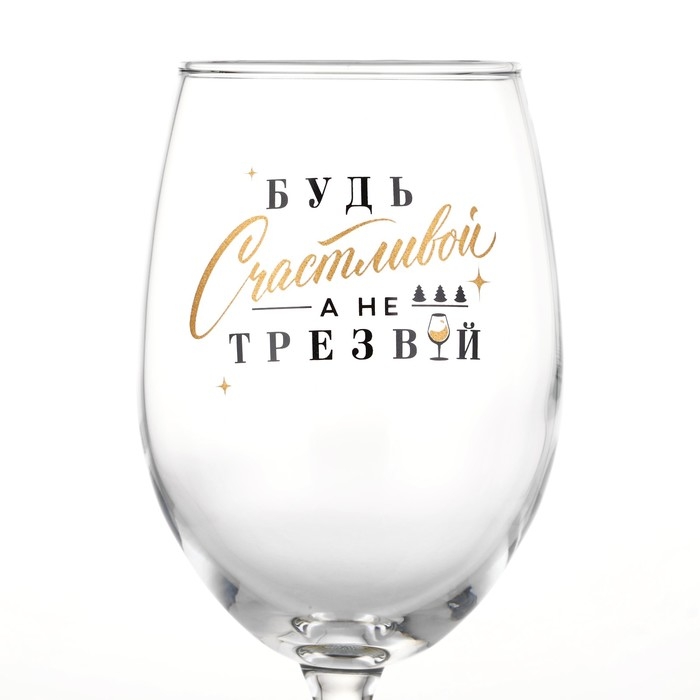 Бокал для вина новогодний «Будь счастливой», на Новый год, 360 мл