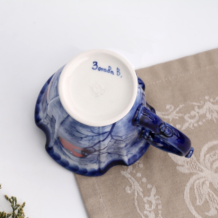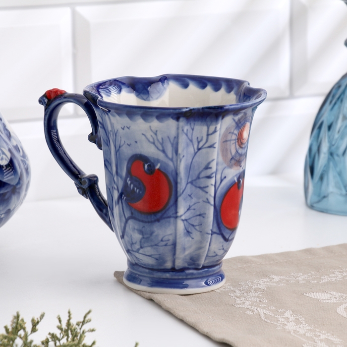 Бокал "Катерина", снегири, 12 х 11 см, гжель