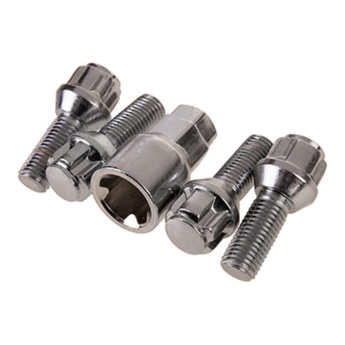 Болты секретки Skyway, M12х1,50х28 конус, 5 луч, 1 кл, хром, набор 4 шт