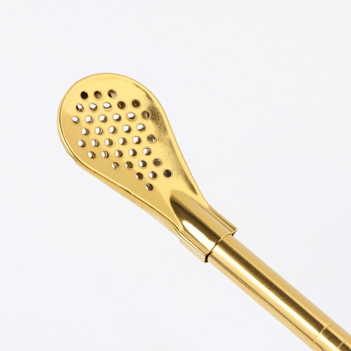 Бомбилья для чая Йерба Мате мини, набор 2 штуки с щёточками для чистки, золото, l-18.5 см