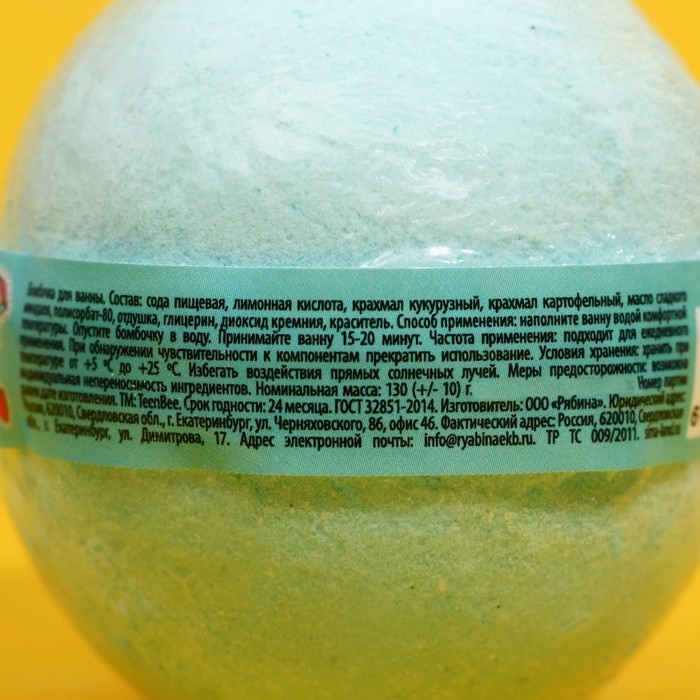 Бомбочка для ванны, 130 г, аромат лимона и лайма, TeenBee