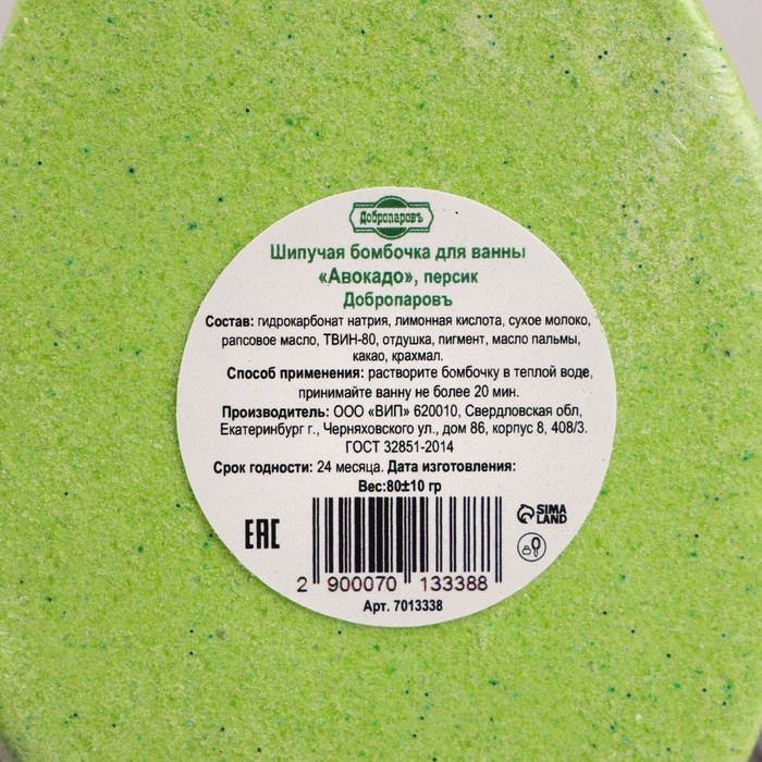 Бомбочка для ванны "Авокадо", персик, 90 гр "Добропаровъ"