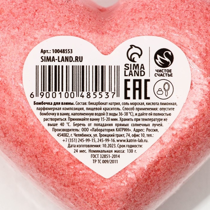 Бомбочка для ванны Love, 130 г, аромат сочного персика, ЧИСТОЕ СЧАСТЬЕ