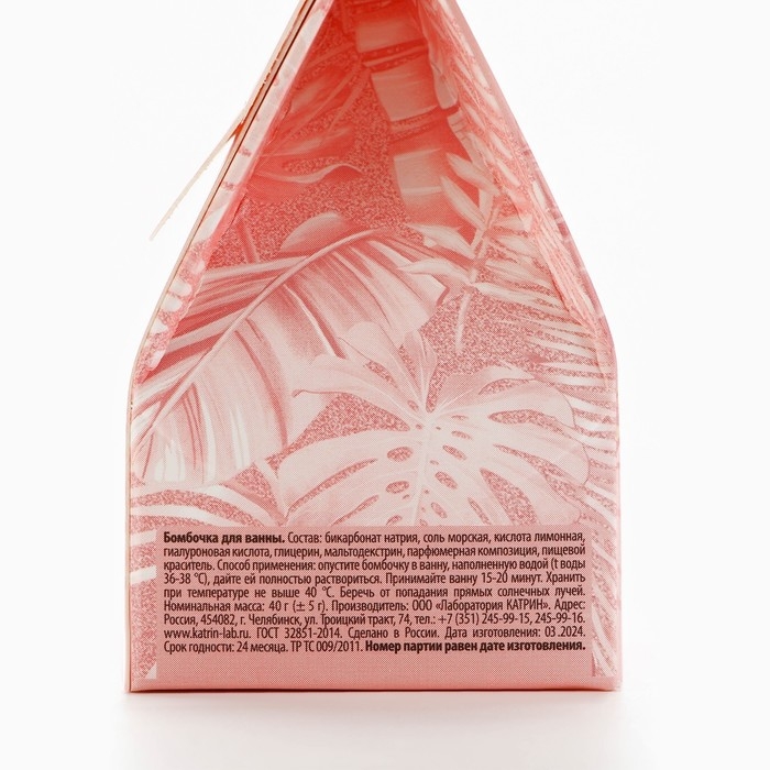 Состав: бикарбонат натрия, соль морская, кислота лимонная, гиалуроновая кислота, глицерин, мальтодекстрин, парфюмерная композиция, пищевой краситель.