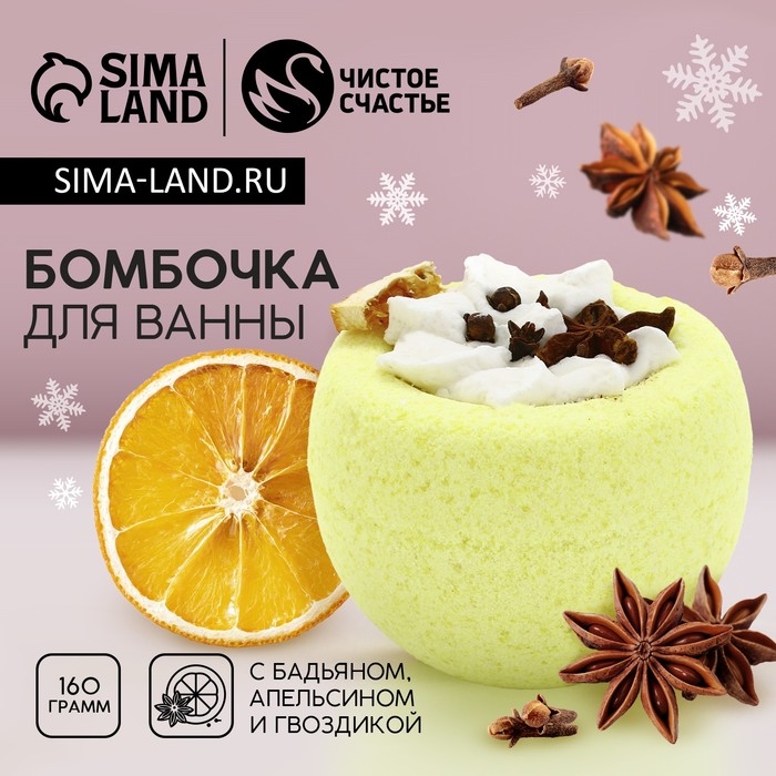 Бомбочка для ванны с добавками, 160 гр,аромат бадьяна, апельсина и гвоздики, Новый Год