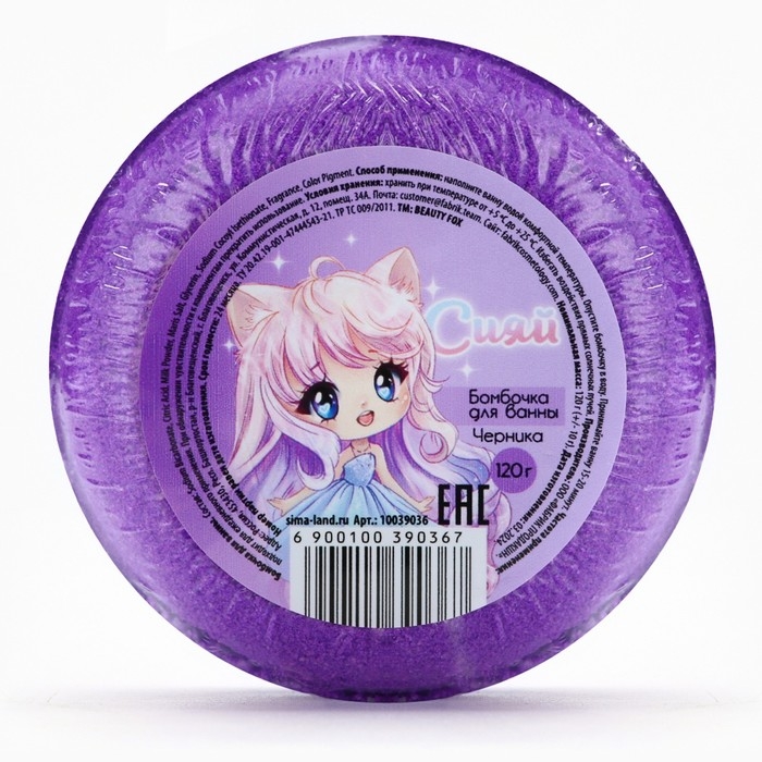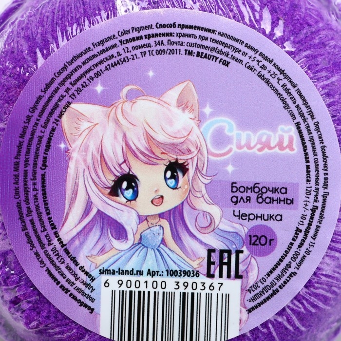 Бомбочка для ванны «Сияй», 130 г, аромат черники, BEAUTY FОХ