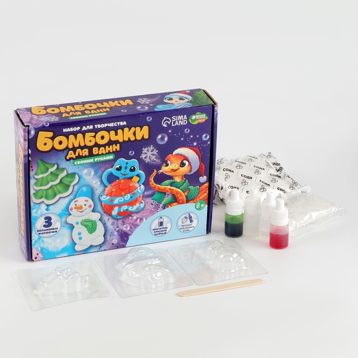 Бомбочки для ванн своими руками на новый год «Сказочный праздник», 3 формы, символ года 2025, новогодний набор для творчества