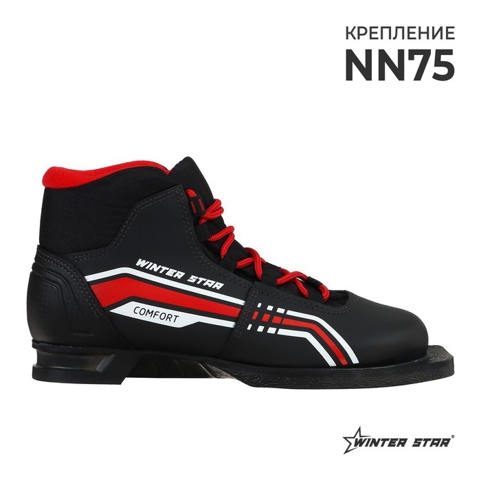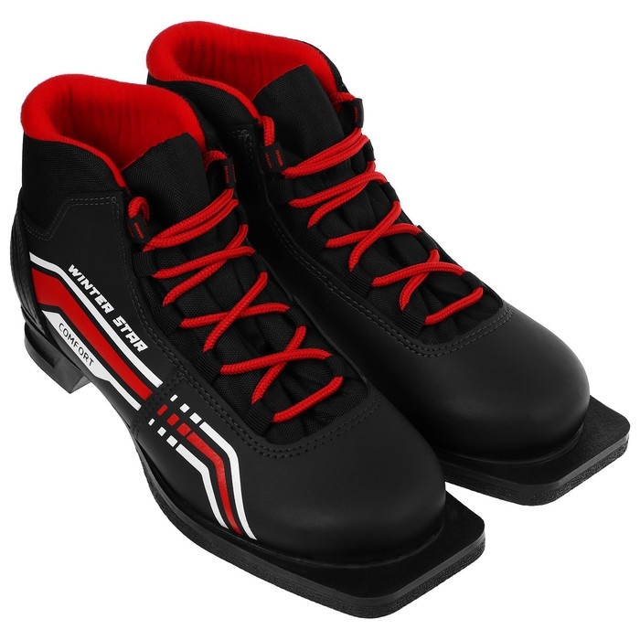 Ботинки лыжные Winter Star comfort, NN75, искусственная кожа, цвет чёрный/красный, лого белый, размер 35
