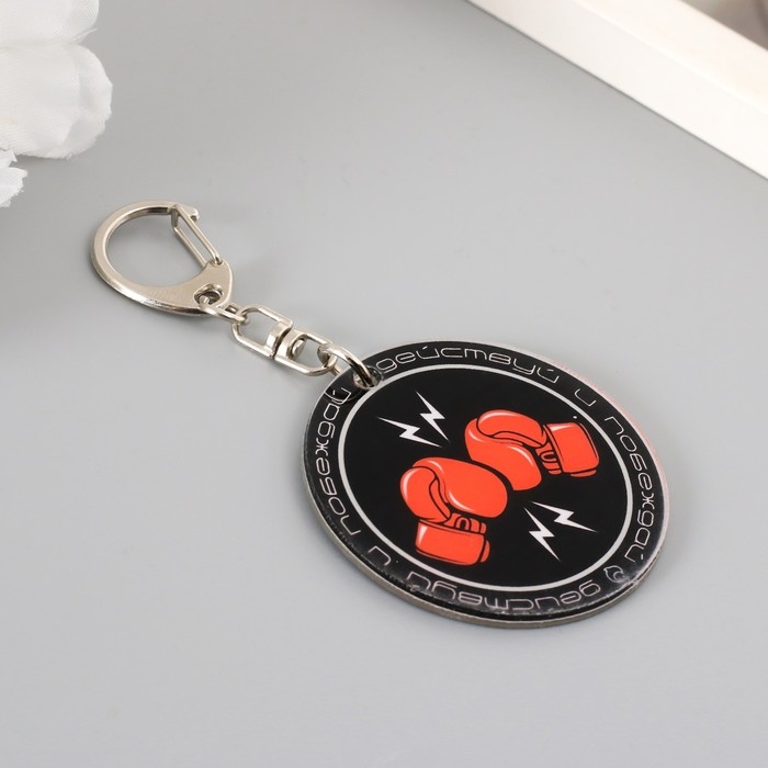 Брелок акрил "Боксёрские перчатки - действуй и побеждай" 5х5 см