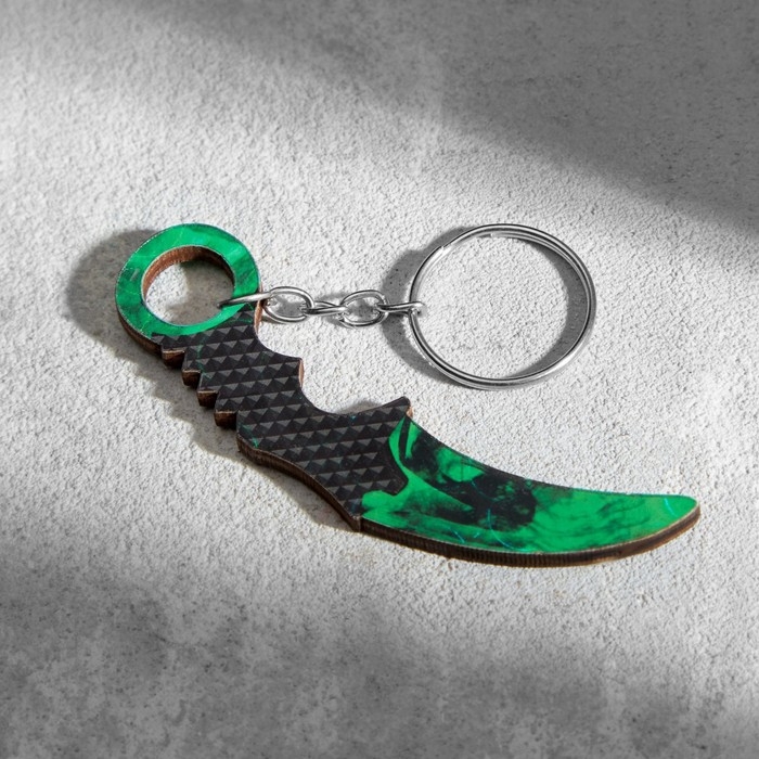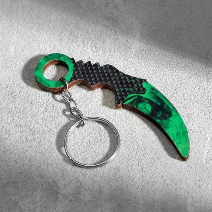 Брелок деревянный "Керамбит" 8х3 см изумруд