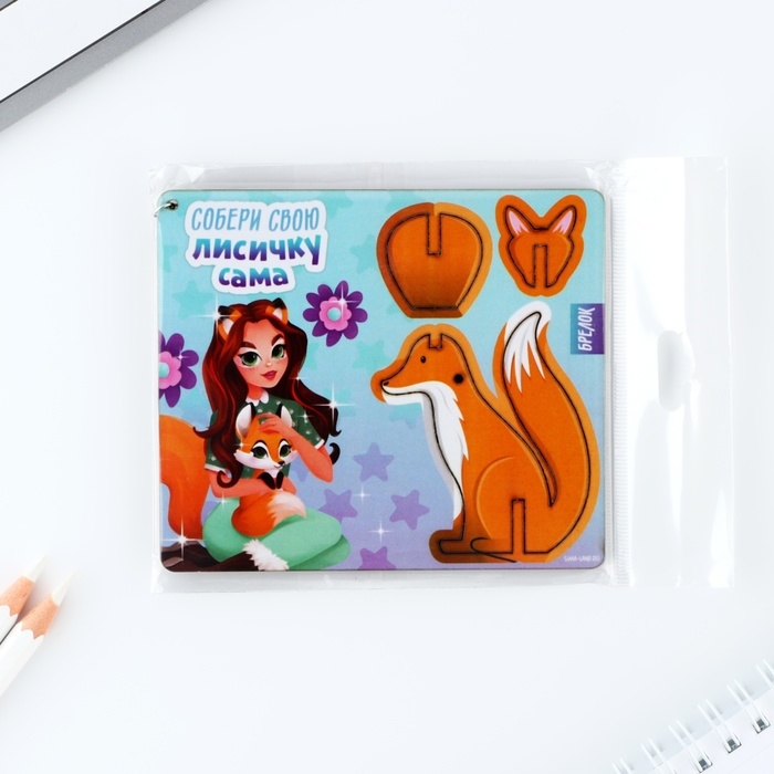 Брелок для ключей деревянный конструктор «Лиса», 5.1 х 5.9 см