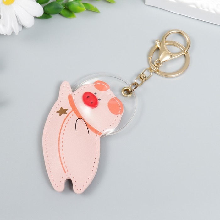 Брелок кожзам с карабином "Свинка-космонавт" 9,3х7,3 см