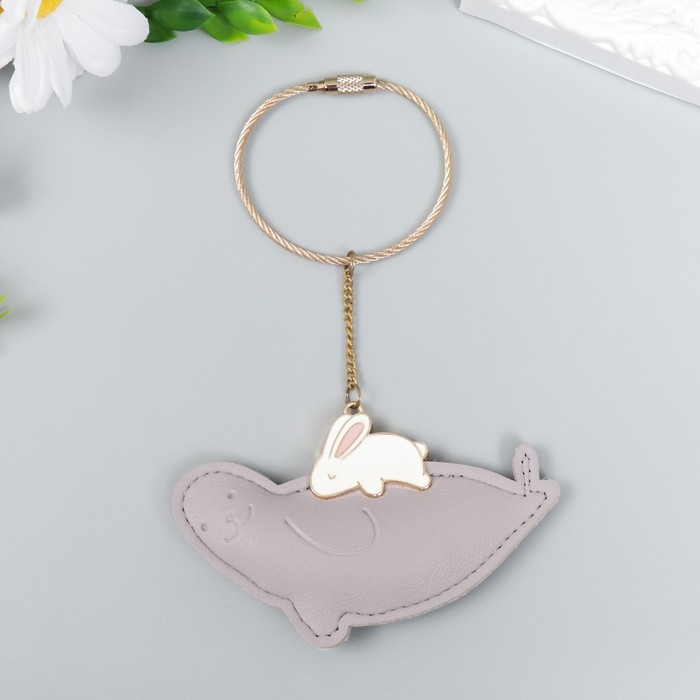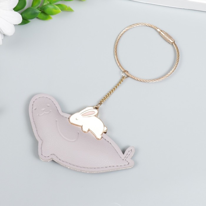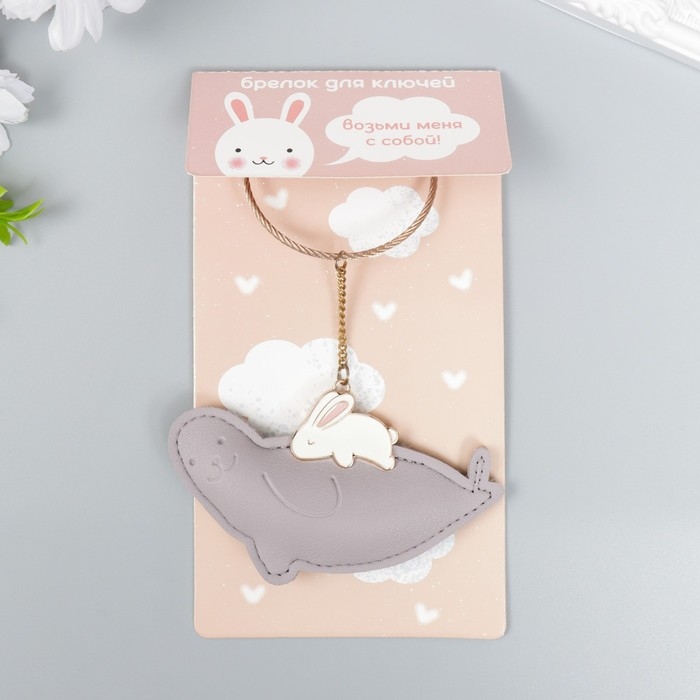 Брелок кожзам "Тюлень со спящим зайчиком" эмаль 6,3х9 см