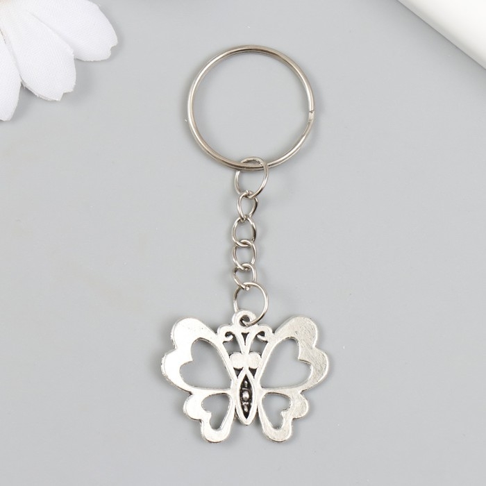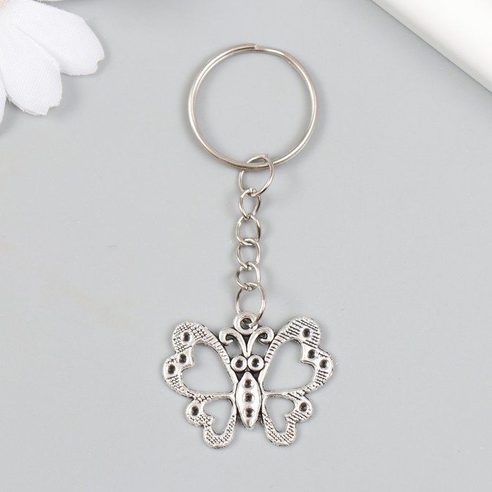 Брелок металл "Бабочка нарисованная" серебро 3,1х2,5 см