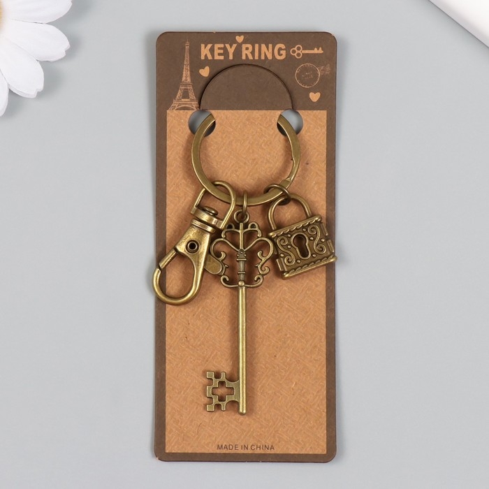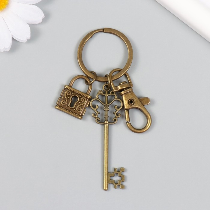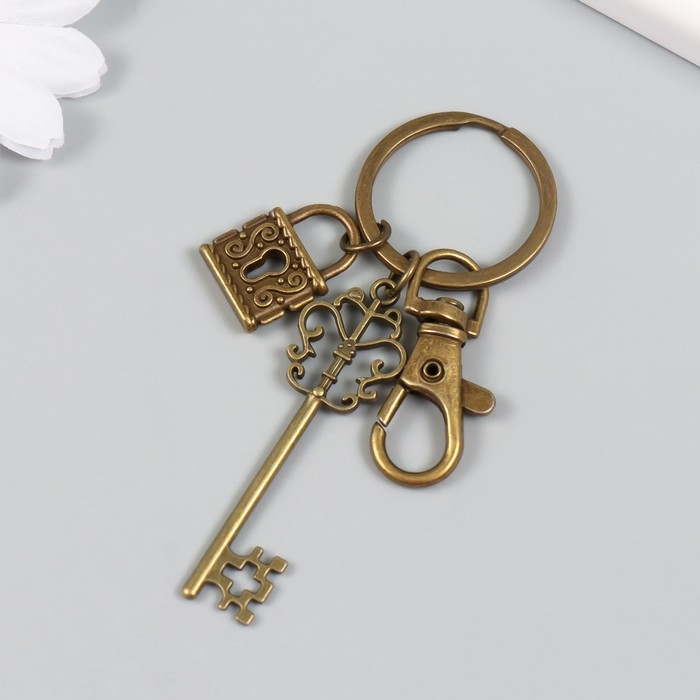 Брелок металл с карабином "Ажурные ключик и замочек" бронза 8,6 см