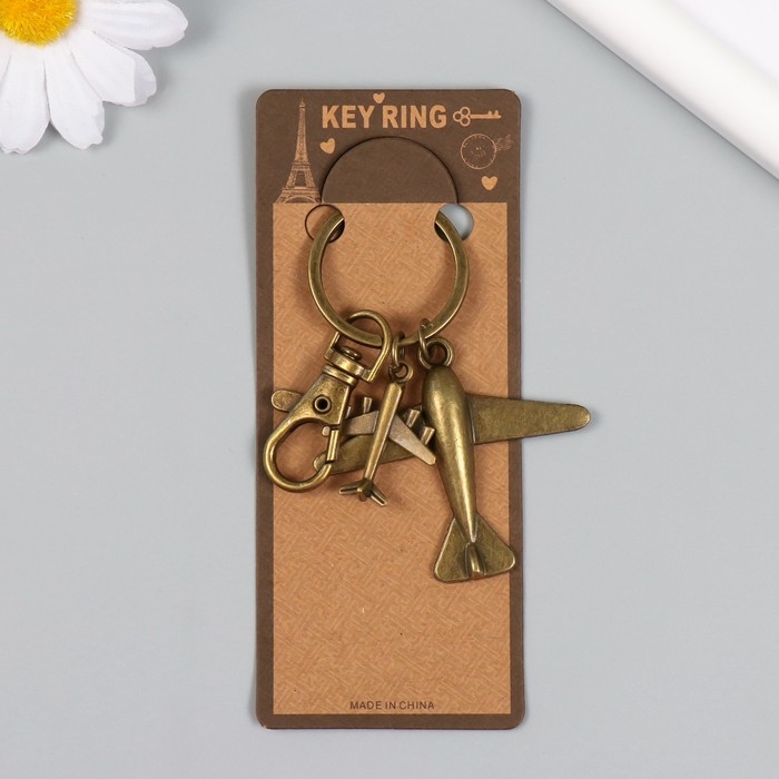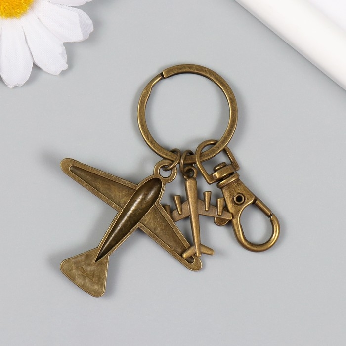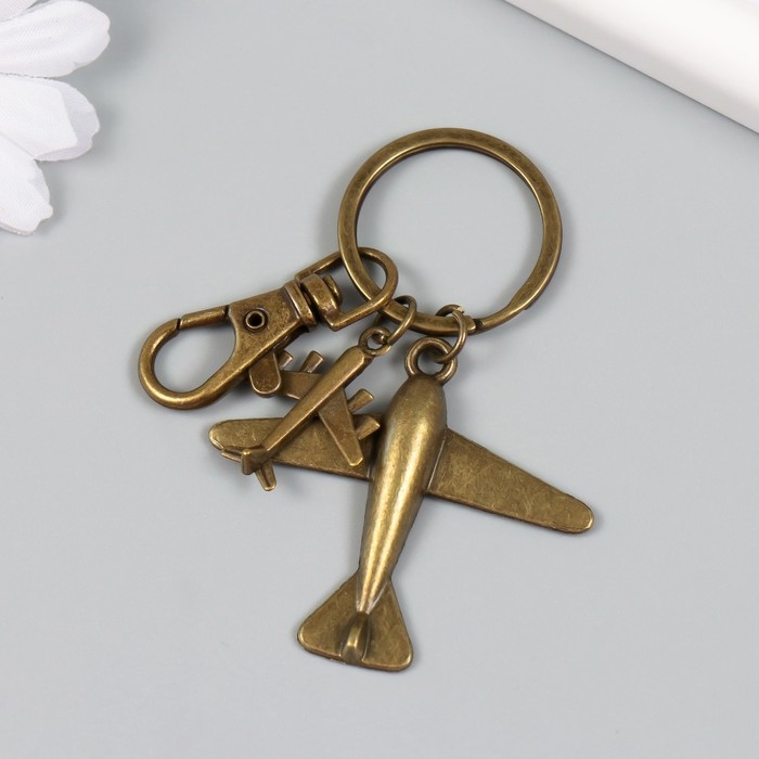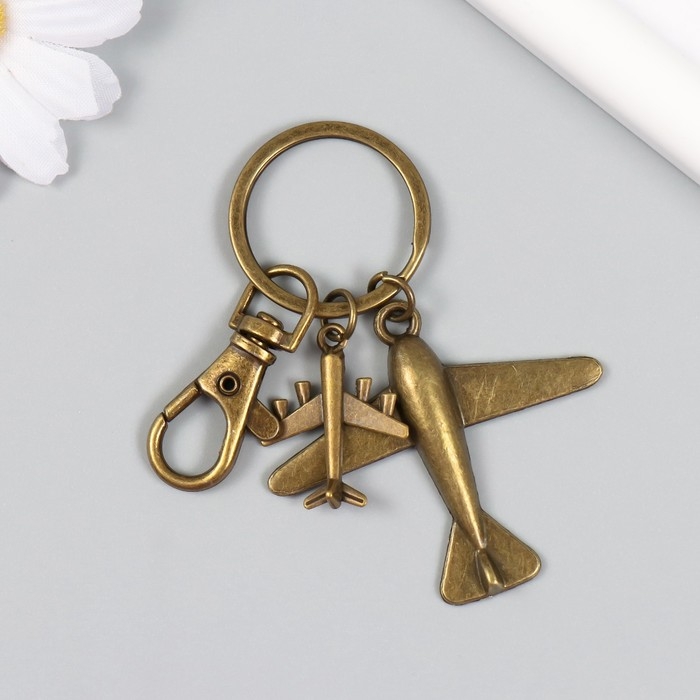 Брелок металл с карабином "Самолёты" бронза 7,5 см
