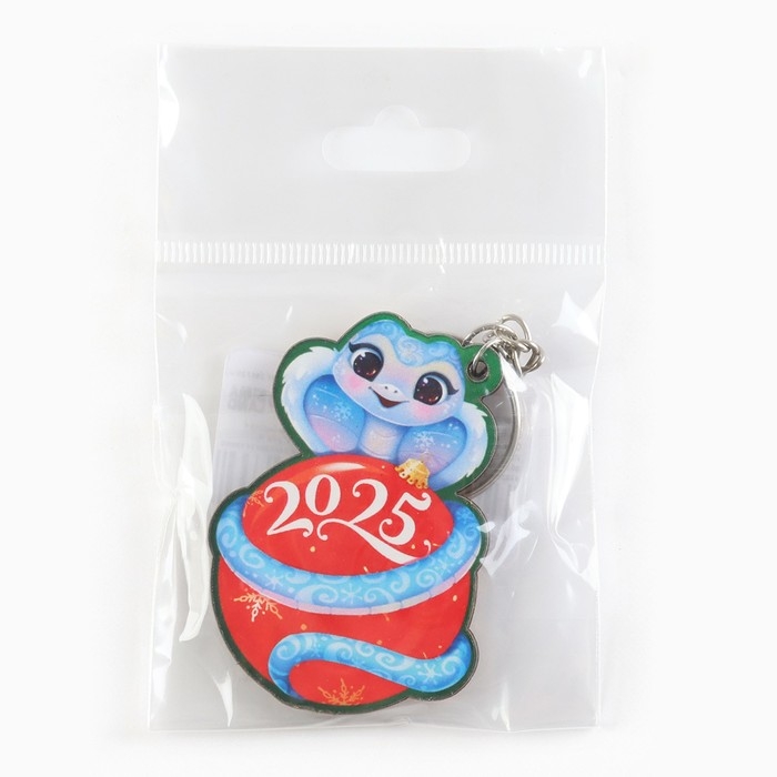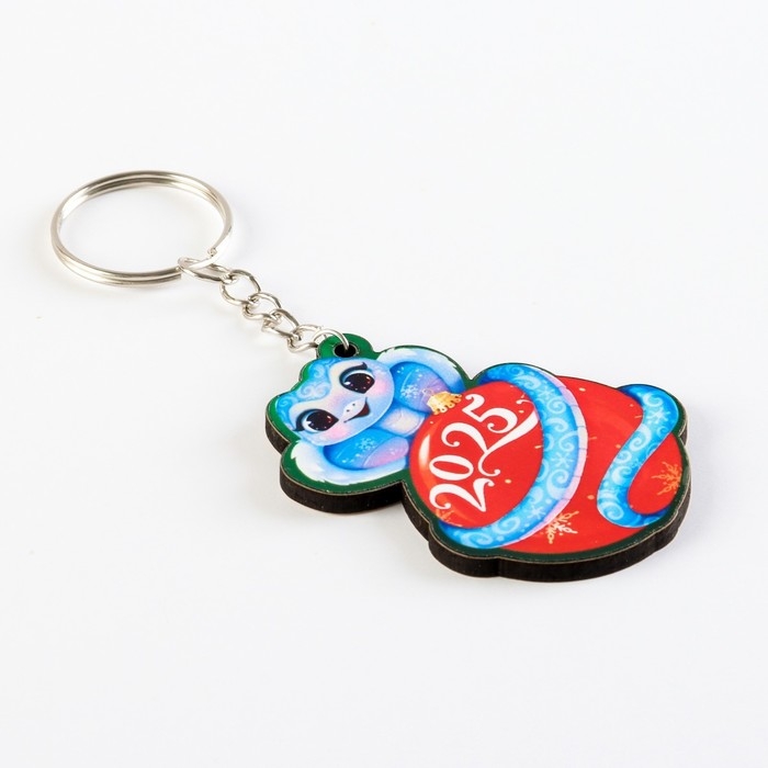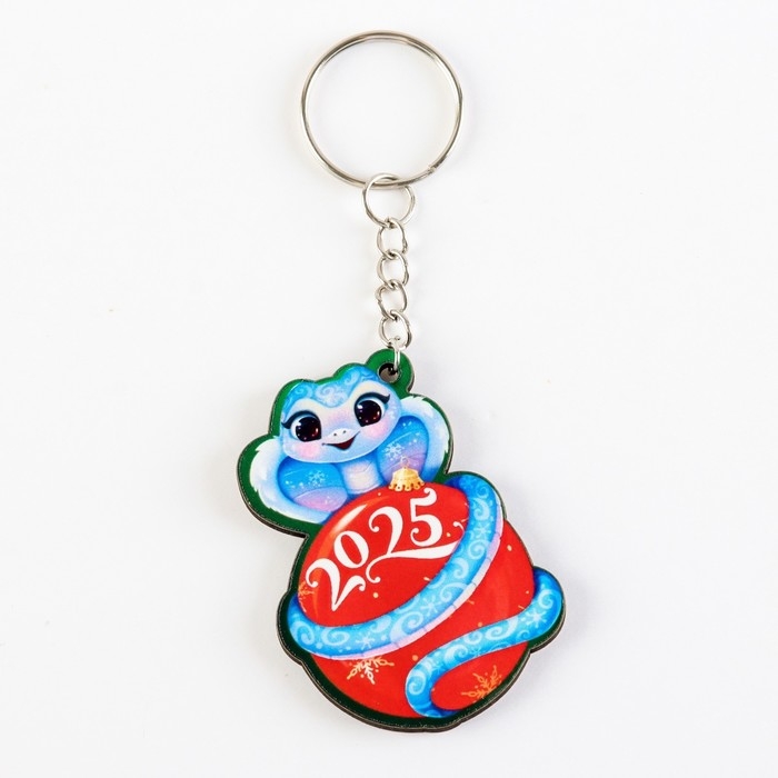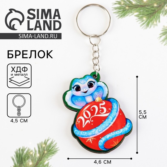 Брелок новогодний, для ключей, деревянный «Змейка на шаре 2025», 4,6 х 10 см