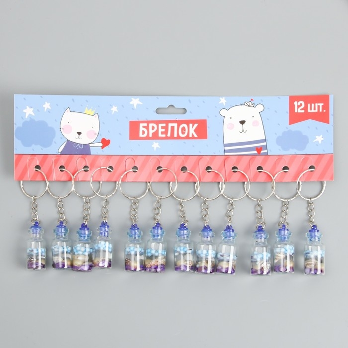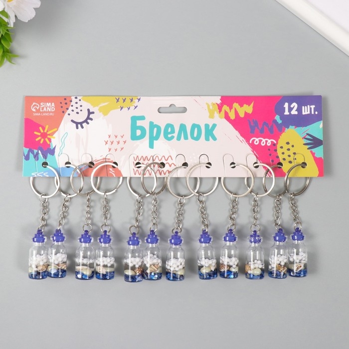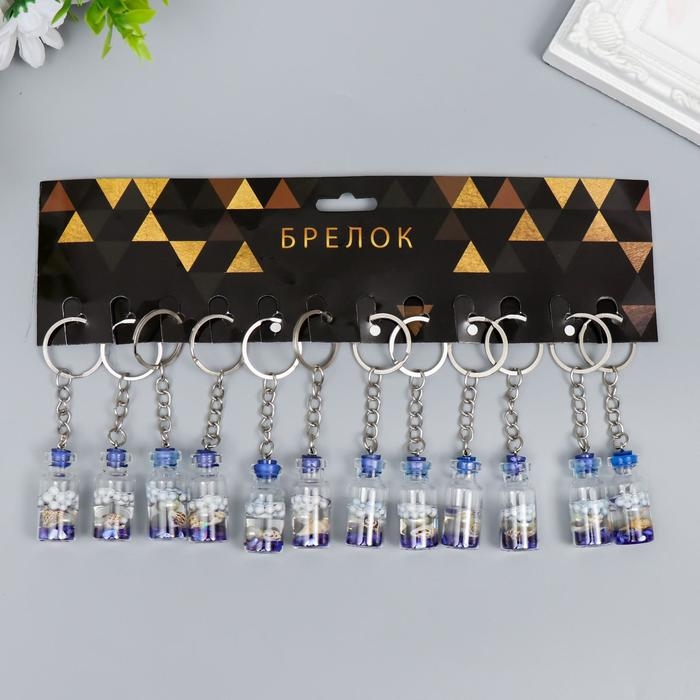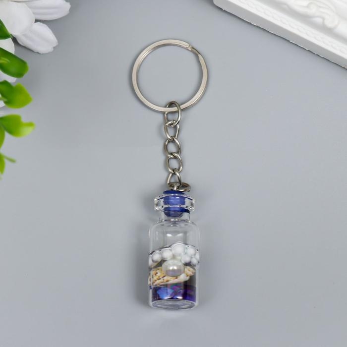 Брелок пластик "Ракушка и жемчужина в бутылочке" синий 3,6х1,6х1,6 см