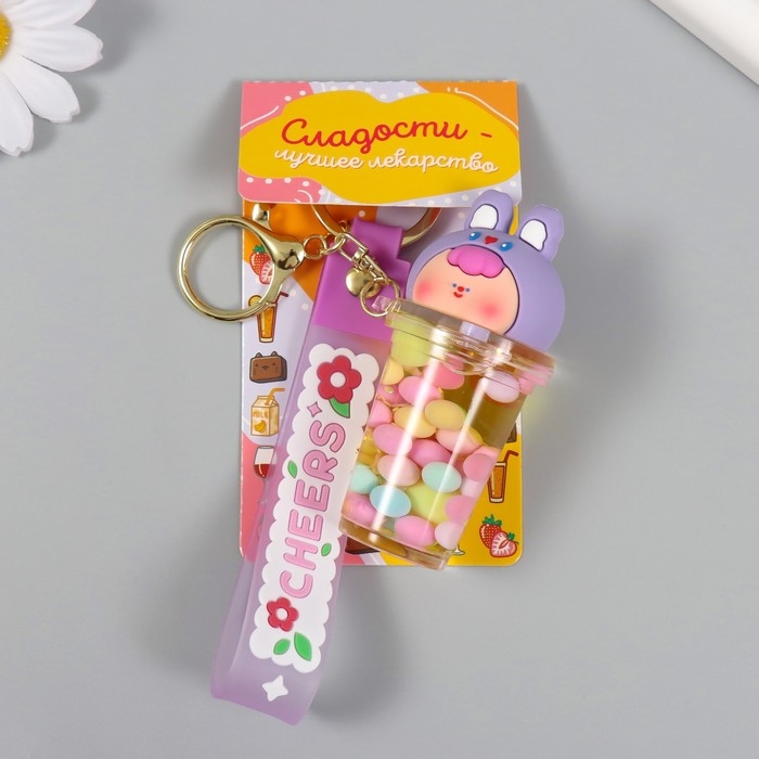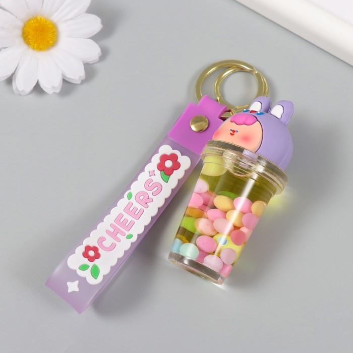 Брелок резина с карабином, ремешком "Стакан с крышкой зайкой" водный с декором 8х3,5х3,5 см 104989