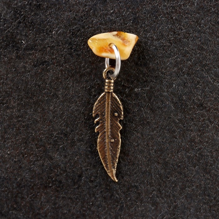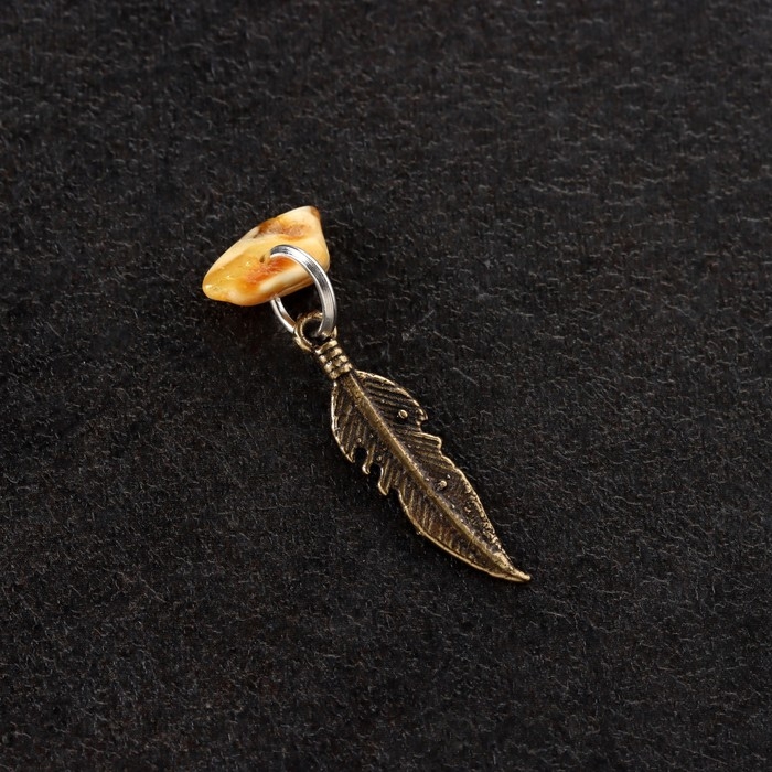 Брелок талисман "Перо", латунь, янтарь