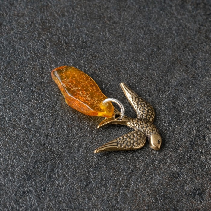 Брелок-талисман "Птица счастья", натуральный янтарь