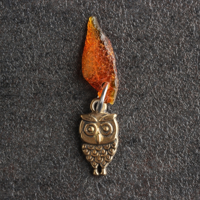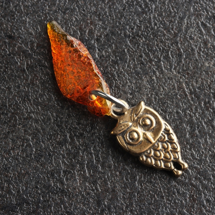 Брелок талисман "Сова", латунь, янтарь