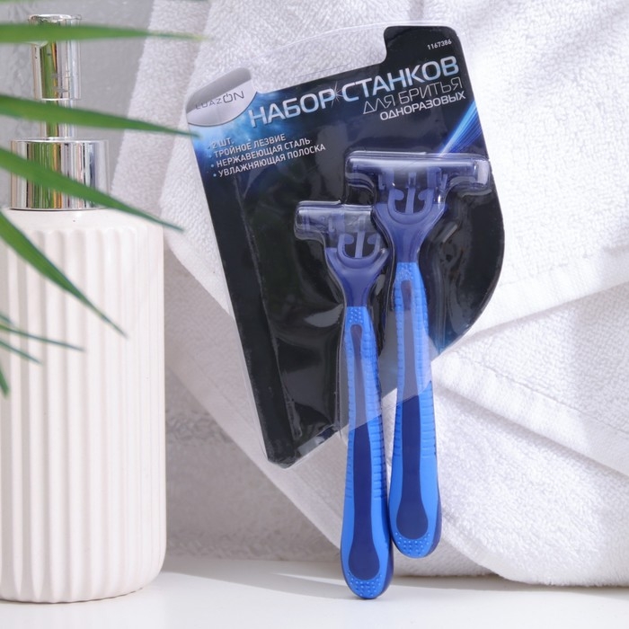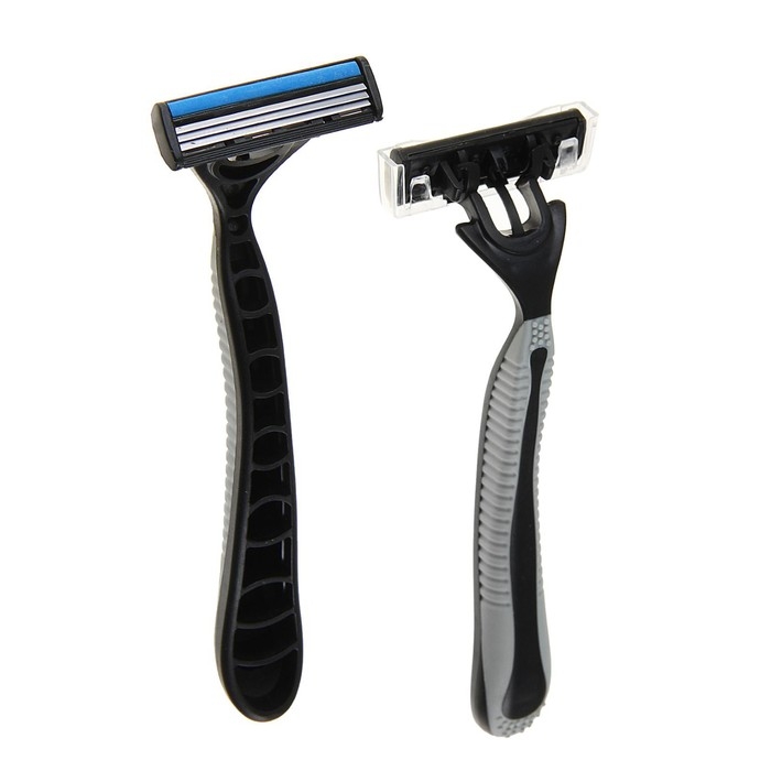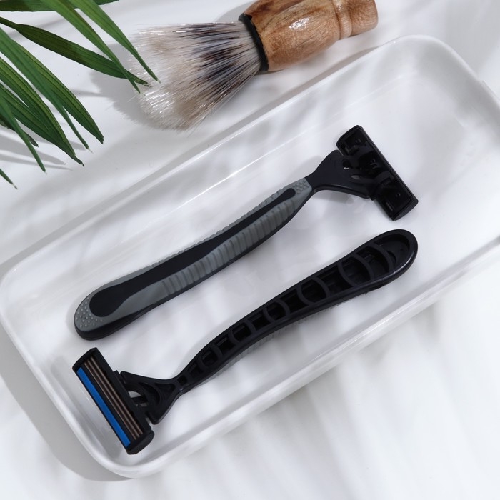 Бритвенные станки одноразовые LuazON, 3 лезвия, увлажняющая полоска, серый, 2 шт.