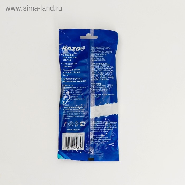 Бритвенные станки одноразовые Razo3man plus, 3 лезвия, увлажняющая полоса, 5 шт